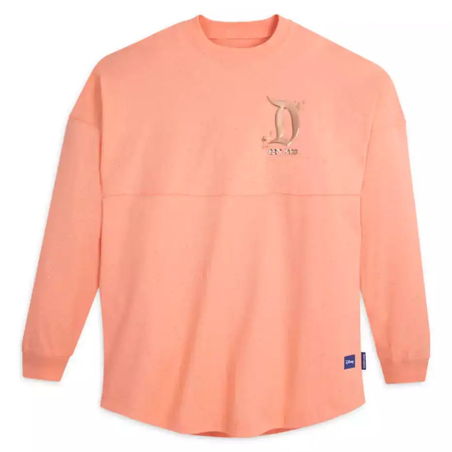 The Spirit Jersey is available as a Disneyland or Walt Disney World version. The sparkly peach fabric has the corresponding castle and resort name in puffy letters across the back.