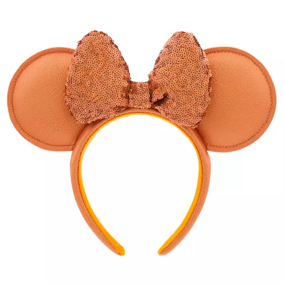 You’ll look peachy keen in the matching Minnie ears that have peach faux leather ears with a puffy peach sequin bow in the middle.