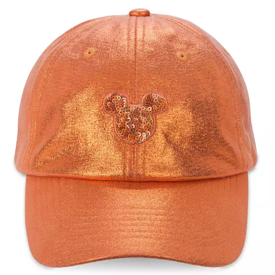 You can save time by not doing your hair but still look stylish if you top off your look with the metallic peach baseball cap that has a small sequin Mickey head in the center. This is also available as a Disneyland or Walt Disney World version.