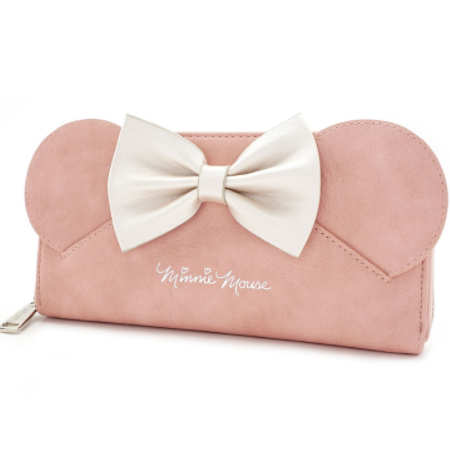 I’m always delighted when I can find a wallet that matches my bag, and Loungefly is always really good at created matching selections. This zip around wallet features the same ears, and foil bow design as the crossbody bag. It’s also just the right size, to fit perfectly within in the purse. The complimenting rose pink wallet is $34.00 on the Loungefly website.