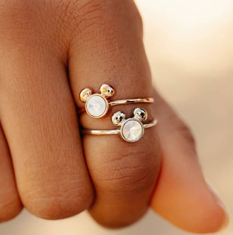 The Mickey Mouse and Minnie Mouse Gemstone Rings would be cute worn together or separately!