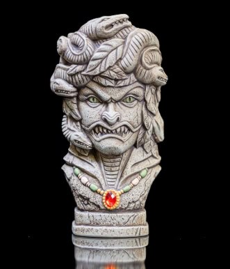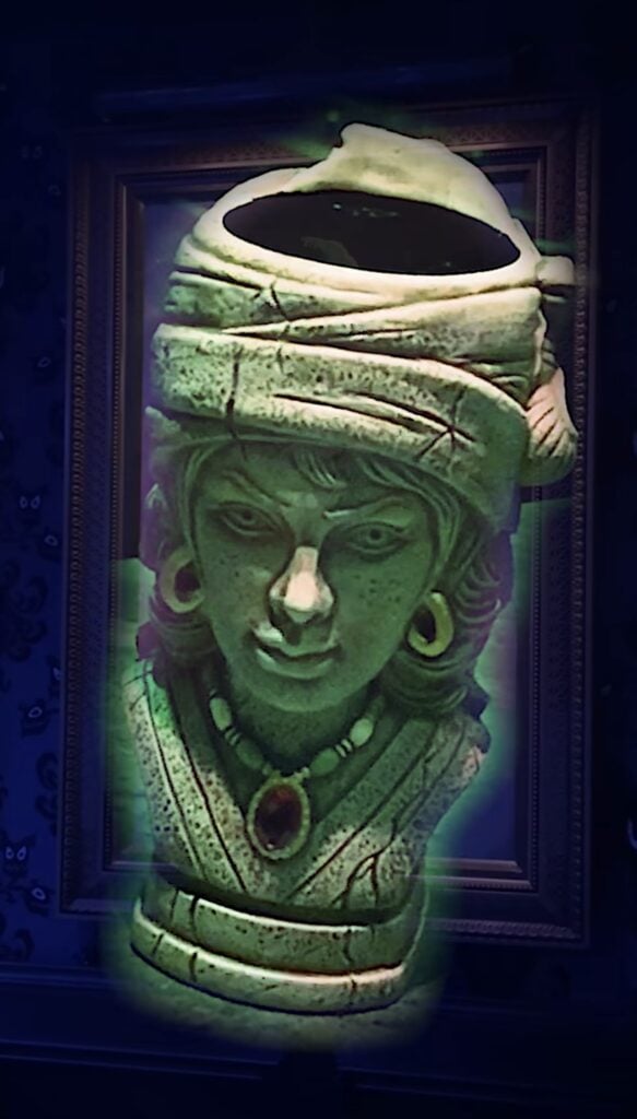 The next mug emerges from yet another haunted portrait in the Parlor. This time, the interactive design captures the chilling transformation of a young woman into something far more sinister. Titled “The Siren,” the mug first reveals a radiant figure, smiling sweetly with her hair wrapped in cloth and a jeweled red necklace adorning her throat. But with a simple twist of the wrist, the illusion shatters, her face warps into a monstrous form. Animal-like features distort her face, venomous snakes writhe through her hair, and sharp fangs gleam where her smile once was. Just like her portrait, the mug lures you in with beauty, only to reveal the terror beneath.