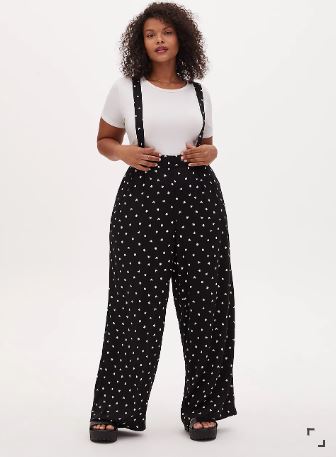 Your favorite duo all in one look! These pinafore inspired overalls are cast in stretch challis fabric for all-day magic and with a tie-back feature, you can style your look with comfort! The stretch waist and wide leg make this a comfortable option for running errands in style!