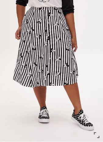 DISNEY MICKEY MOUSE & MINNIE MOUSE BLACK & WHITE STRIPE CHALLIS MIDI SKIRT
