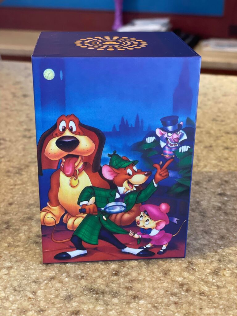 It comes in a collectible box with the Great Mouse Detective himself on the front with his trusty dog, Toby – and his archenemy Ratigan. Watch out for Ratigan’s pet cat Felicia on the back! Even the inside of the box has a clever detail – it looks like a mouse trap.