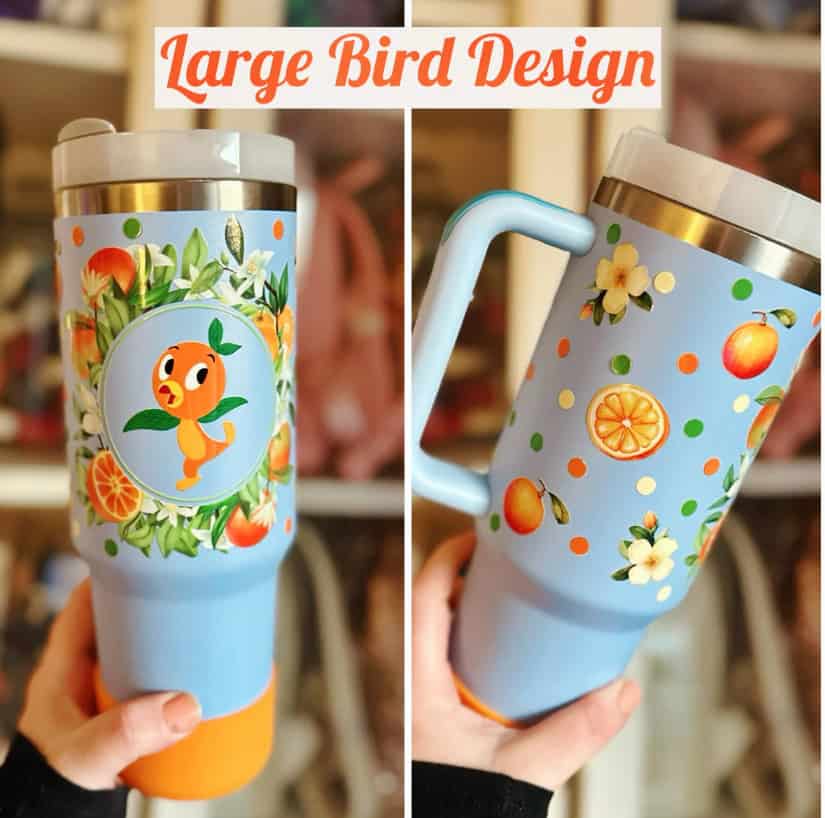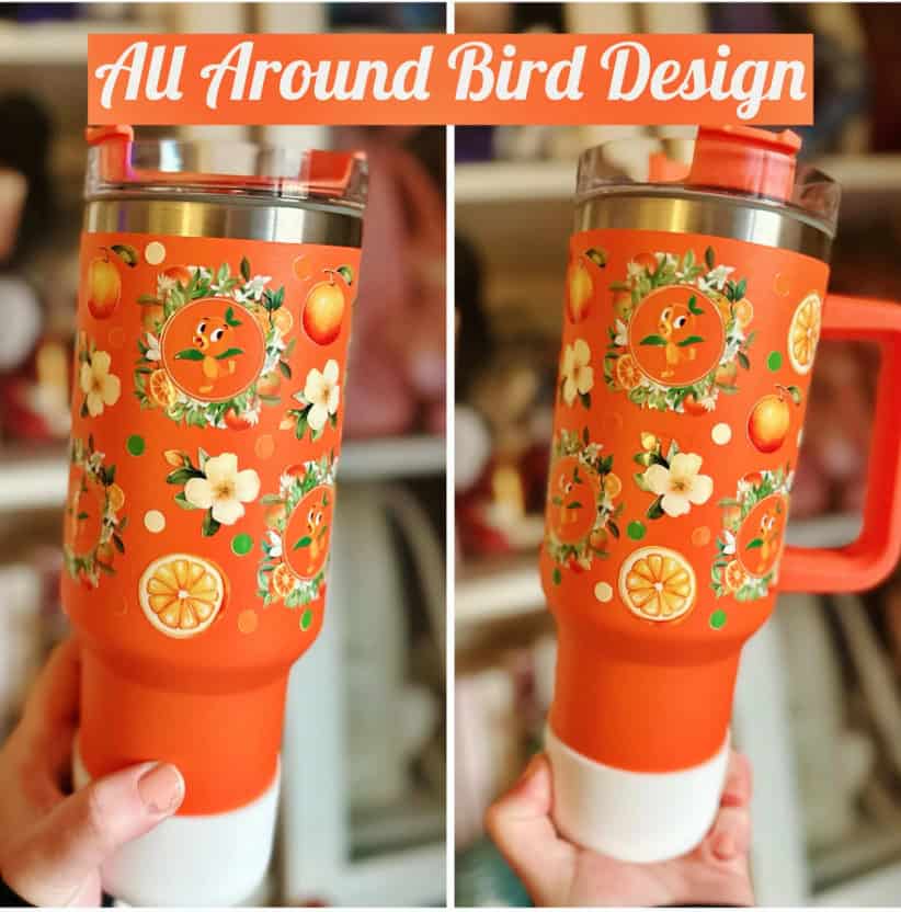 It’s no secret our society is quite fond of our drink tumblers. They are not only transporters of beverages, but expressions of personality. Bottom Line: we just can’t get enough of them! Small Shop “For the Love of Pixie Dust” has introduced the Tweetest new design! Make way as Orange Bird Lands on Adorable Tumblers.