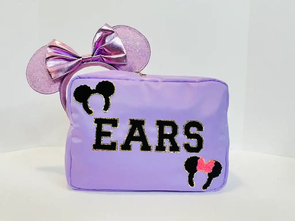 If you have ears to pack for your Disney vacation, you are going to want to check out these bags! Pack your ears in an extra-large (10.5” x 7.5” x 4.5”) nylon bag in your choice of color. Personally, I love the purple! Each bag will come with 4 letter patches to spell EARS, 1 mouse headband patch, and 1 mouse with bow headband patch.