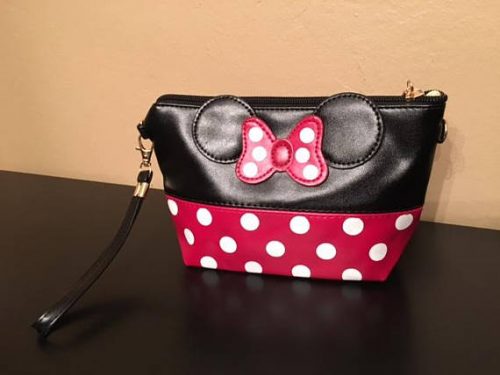 If you’re looking for something to jazz up your makeup routine, this sweet little bag is just for you! Minnie Mouse is clearly the inspiration for this wristlet. I love red and white polka dot pattern and I think Minnie herself would totally approve as well. Plus, those Minnie Mouse ears with her signature bow really set this makeup bag over the top as the ultimate fashionable accessory. You also have the option to personalize your bag (as seen in the picture above) with high-quality heat transfer vinyl. Each faux leather bag measures approximately 8×5 inches and features a zippered top and a clutch strap.