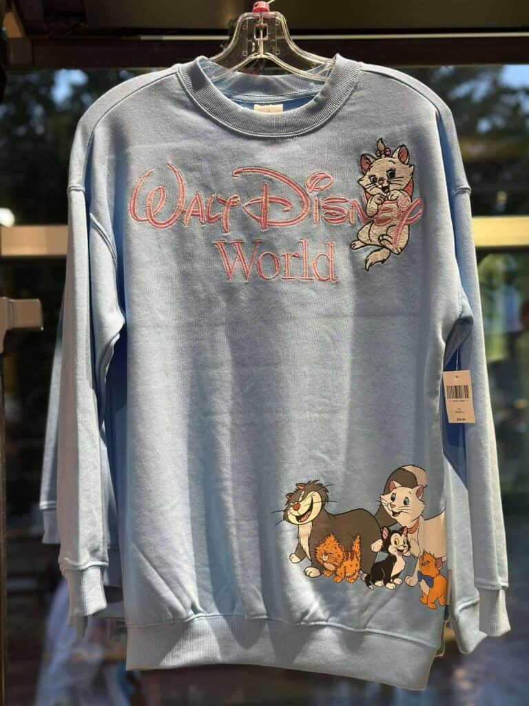 It’s raining cats and dogs in the most magical way! Representing the pastel trend, this collection features two dreamy Disney sweatshirts: a baby blue beauty filled with fan-favorite feline friends, and a mint green design celebrating The Fox and the Hound. The blue crewneck brings together a purr-fect lineup. Wild Child Cheshire Cat grins alongside the ever-charming Mademoiselle Marie and more of Disney’s iconic cats. Meanwhile, on the mint green sweatshirt, Tod sweetly peeks over the embroidered “Walt Disney World” logo, capturing the heartwarming spirit of friendship.