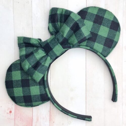 Green And Black Buffalo Plaid Flannel Mouse Ears