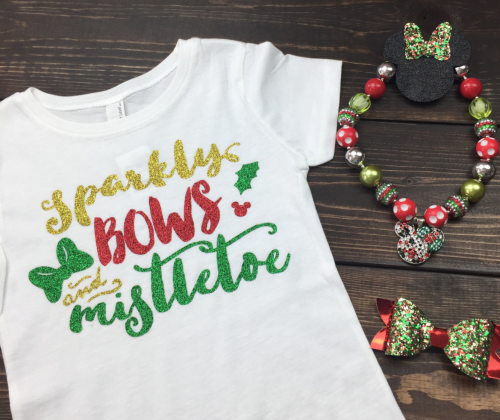 Let’s start with the one I will be wearing for the first time this year. This is my new holiday tee and I cannot wait to wear it! I’m a huge Minnie fan and this is clearly inspired by her.
