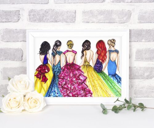 This unique Princess Rainbow Dress Collection illustration is available on Etsy from MelsysIllustrations HERE. Pricing starts at $18.00 and there are several different size options available.