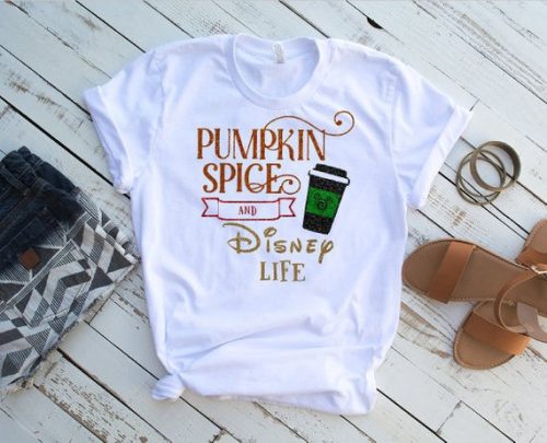 Each shirt features the phrase “Pumpkin Spice and Disney Life.”