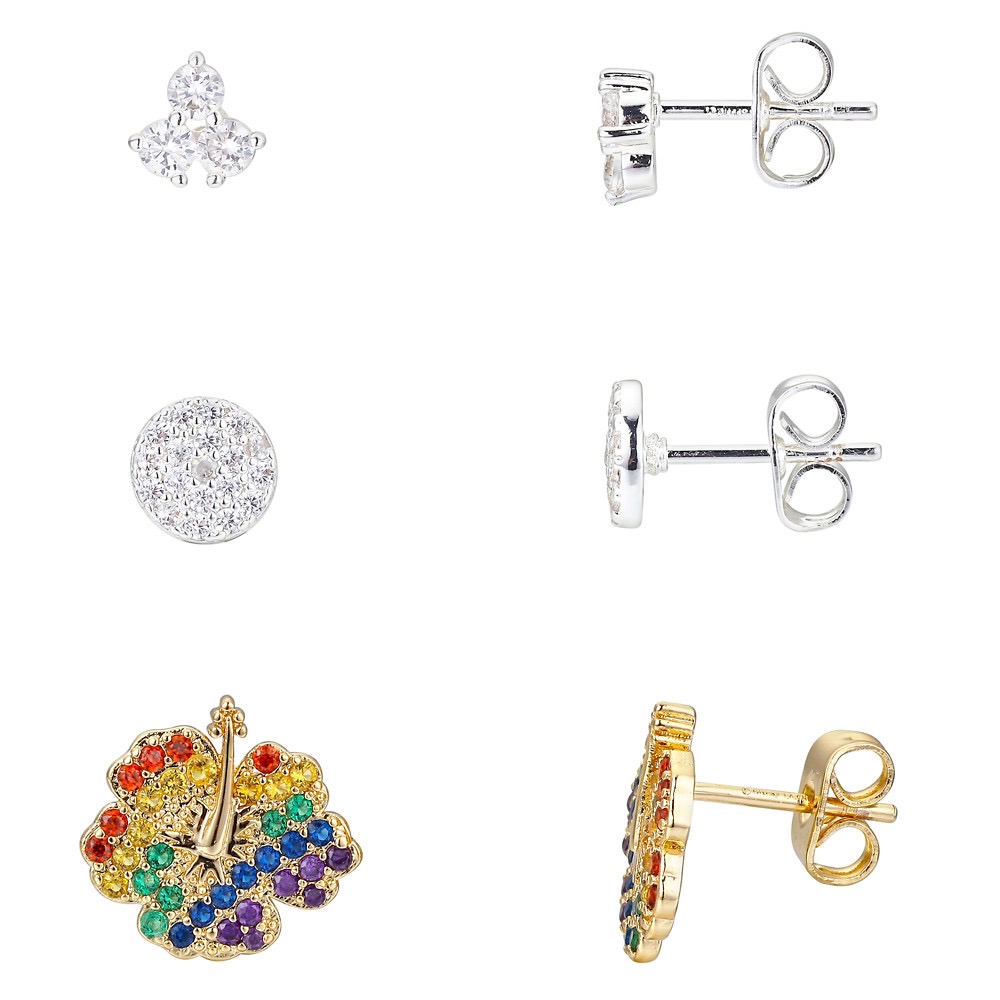 Like the Minnie necklace, the Lilo and Stitch necklace has a coordinating stud earring set. The set includes a hibiscus pair to match the necklace and two cubic zirconia pairs.