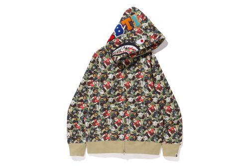 The collection consists of 32 pieces including hoodies, t-shirts, a cushion, and a tote bag with 7 original designs. Designs are available in both adult and kids sizes online at bape.com and in-store in Los Angeles, and New York City. Ralph and Vanellope have been integrated into BAPE’s original camo and BABY MILO. The graphics are stylized in BAPE’s signature aesthetic and design!