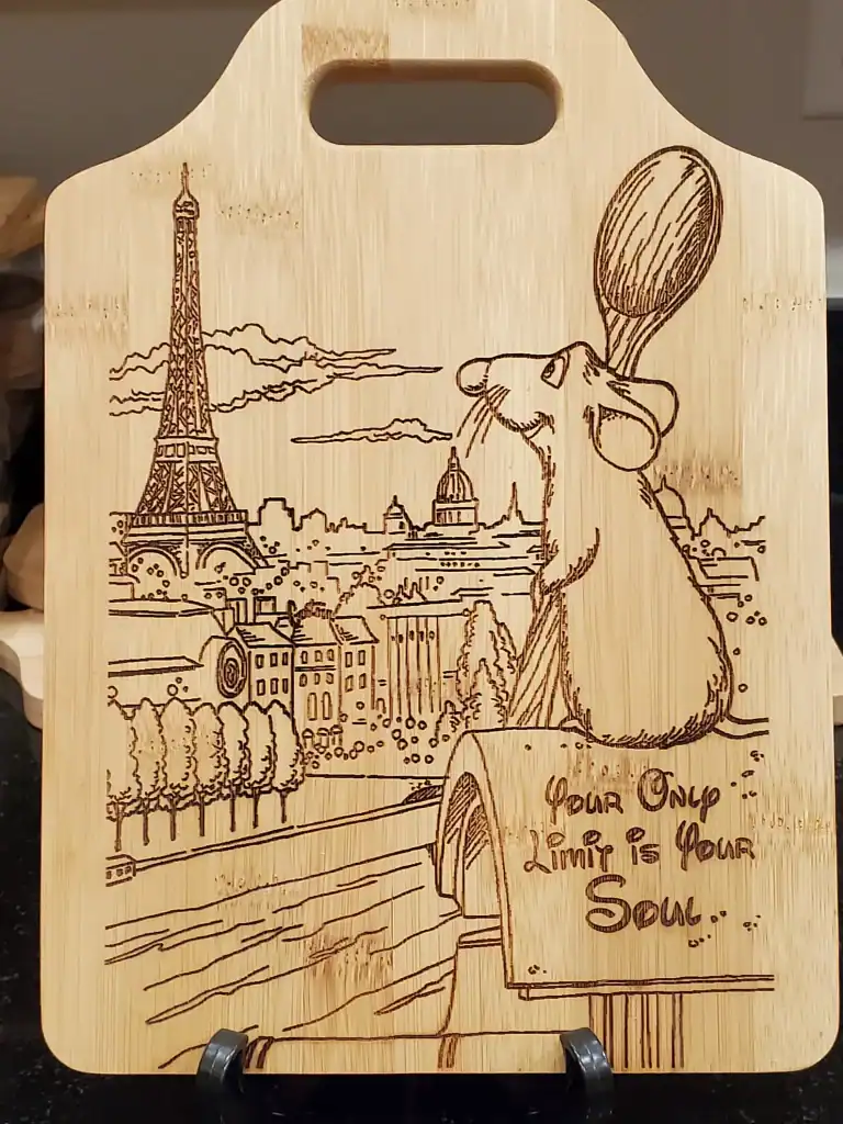 Channel your inner Chef Remy as you chop, dice, and prepare your food on this beautiful Ratatouille inspired cutting board and cheese board. It’s a fun and practical way to bring the magic of cooking into your own home!
