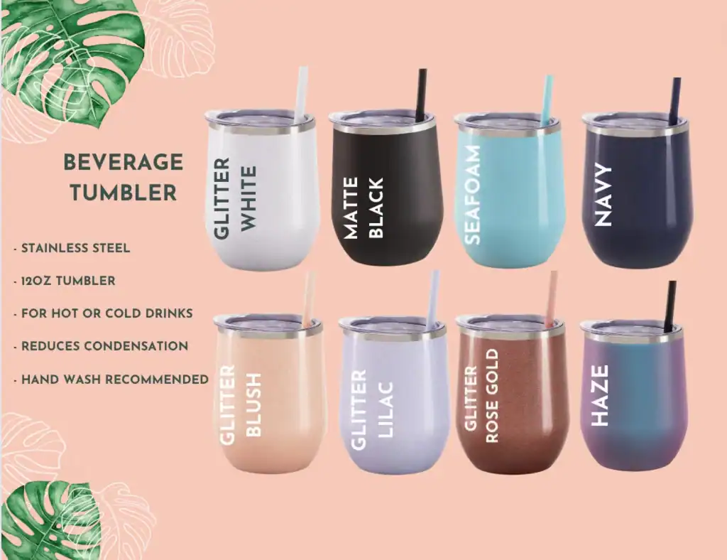 There are eight different color options to choose from when picking your tumbler. For summer, I love the seafoam and glitter lilac. However, now that we are in autumn, I am loving the glitter blush and glitter rose gold for this season.