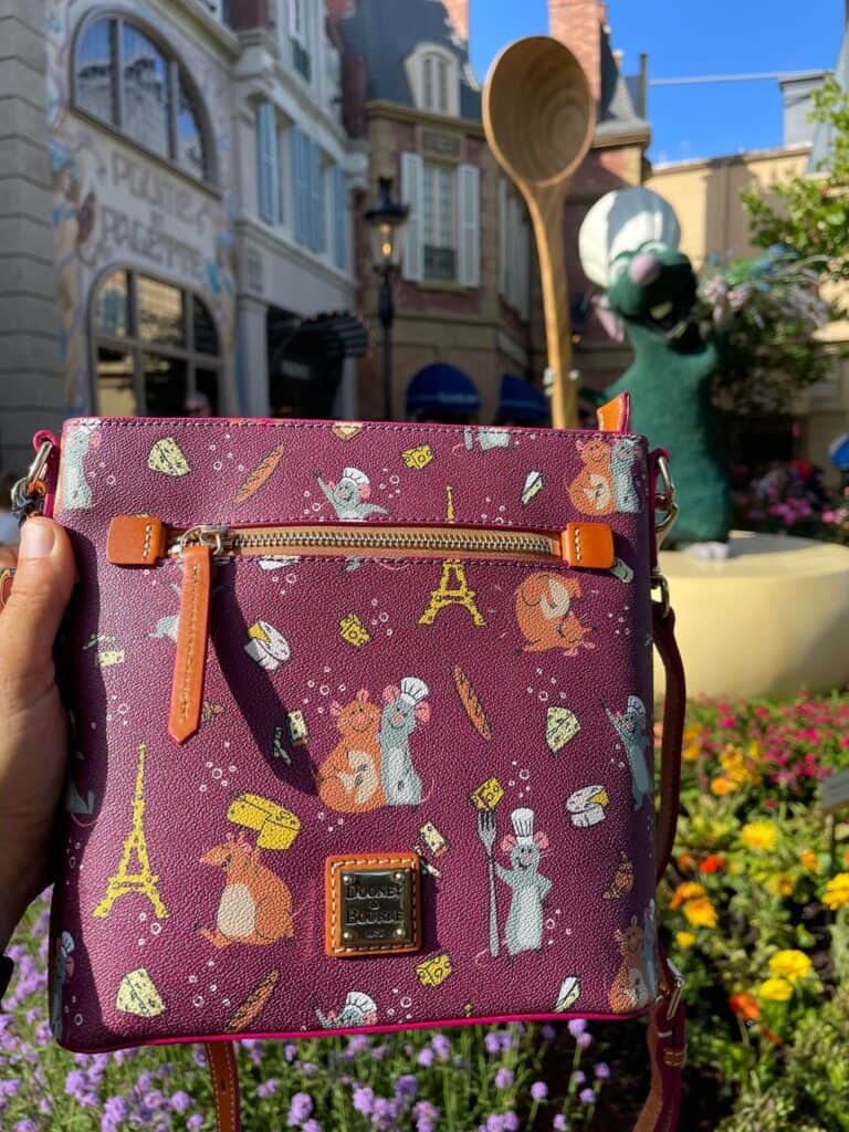 You can find the Remy’s Ratatouille Attraction Dooney & Bourke Collection at EPCOT in the France pavilion. Disney Springs had shared the sneak peek so I would guess it is there, too. If you won’t be at Disney, you can find it online HERE.