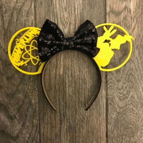 Rock down Main Street USA wearing these awesome Eye Two Eye 3D Mouse Ears. Each ear features a different silhouette of Powerline himself! The ears are 3D printed in yellow with a black headband and bow.