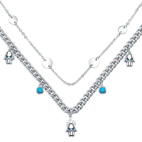 RockLove describes Hades as “Smoldering and relentless, (his) fiery temper blazes as he rules the Underworld with cool, calculated flair.” His jewelry delivers that same fiery energy. The Hades Havoc necklace, earrings, and ring channel Hades’ underworld flair with striking detail. At the heart of the ring is a glowing blue crystal, representative of Hades’ signature blue flames. It is also surrounded by flame-like etchings and villainous swagger. The collection is bold, dramatic, and it’s perfect for anyone ready to rule their world, underworld or not.