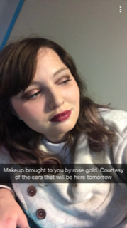 I took a reddish berry color for my lips. I really wanted to pull from the red undertones the ears have in certain lighting. For my eyes, I used a rose gold eyeshadow. The only true rose gold shadow I can find is sold by Senegence.