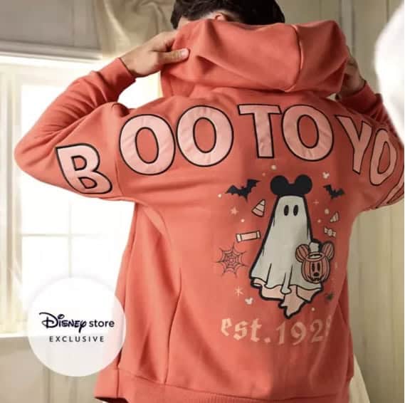 If you’re looking to Say Boo to the Chill with the Mickey Ghost Hoodie, don’t search the parks! This apparel is Disney Store Exclusive and only available online HERE.