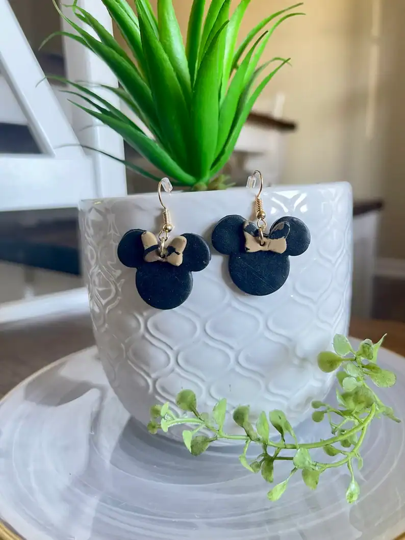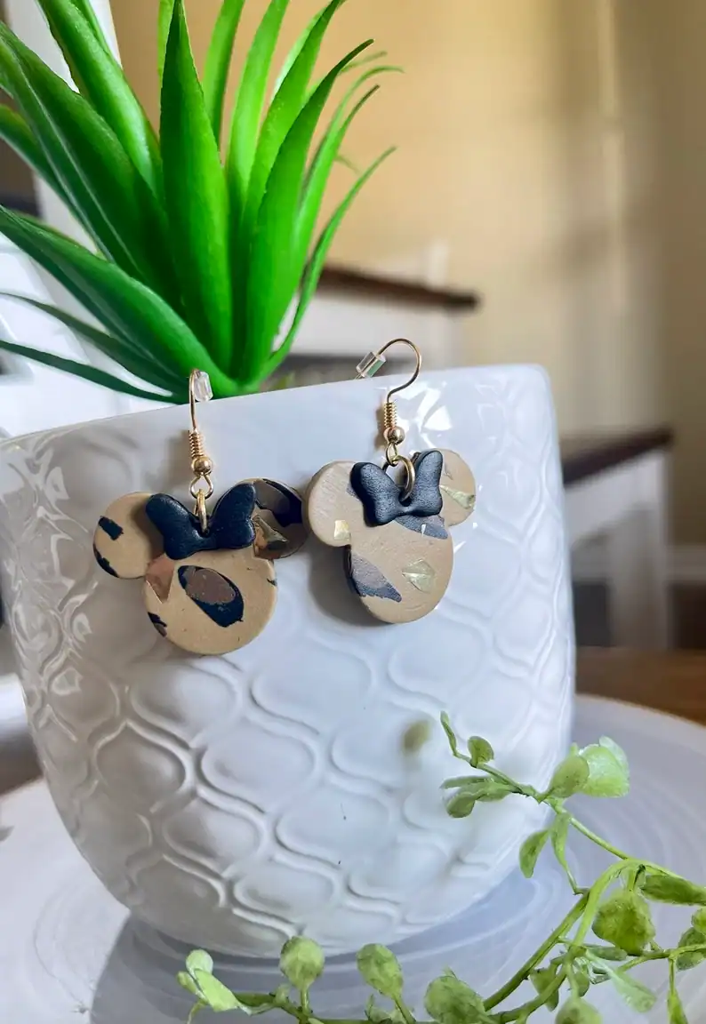 White and Tan Cheetah Print Minnie Mouse Earrings