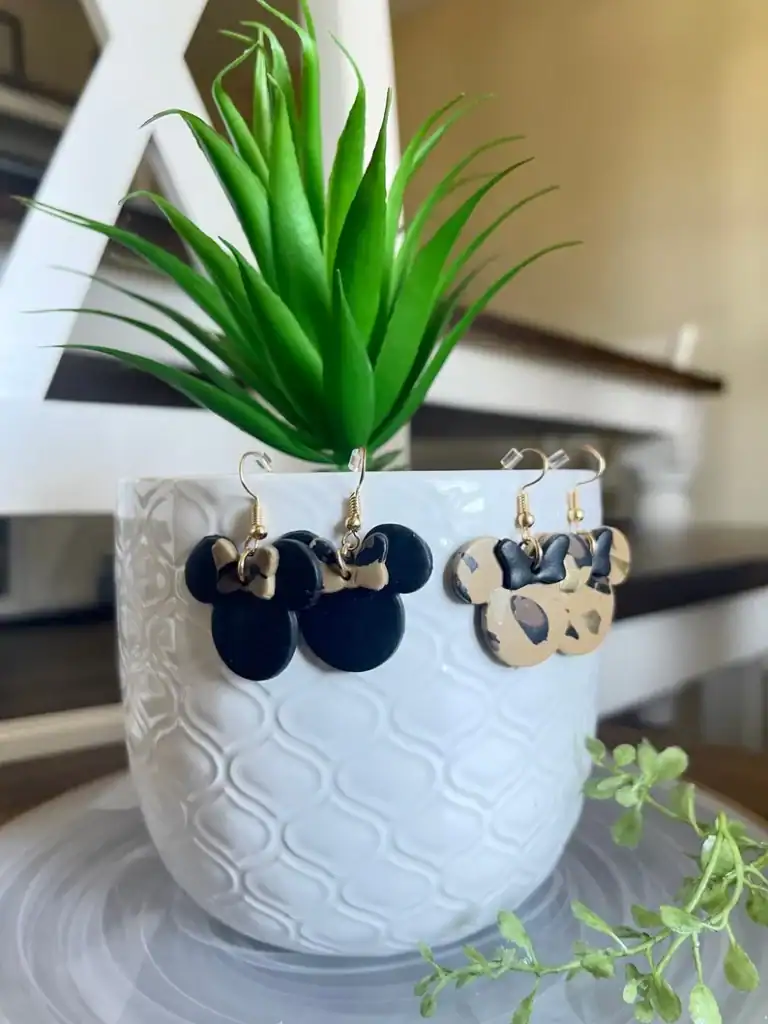 You can lighten things up but still dress in style! These White and Tain Cheetah Print Minnie Mouse Earrings are perfect for a hot summer’s day at Animal Kingdom.