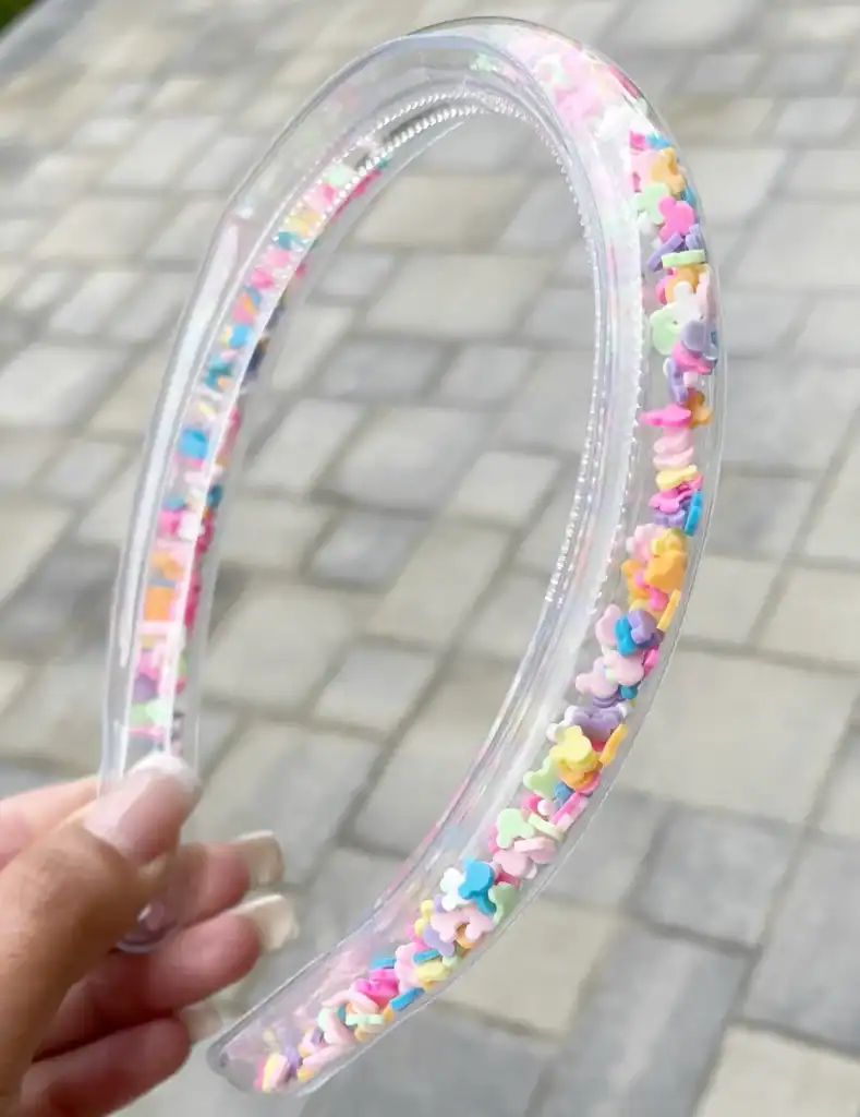 Next, this transparent headband is filled with colorful Mickey “confetti” that looks just like cupcake sprinkles! The headband is not completely filled with confetti so that you can shake your headband and move the Mickey sprinkles around. If you love sweet treats and sprinkles, this one is definitely for you!