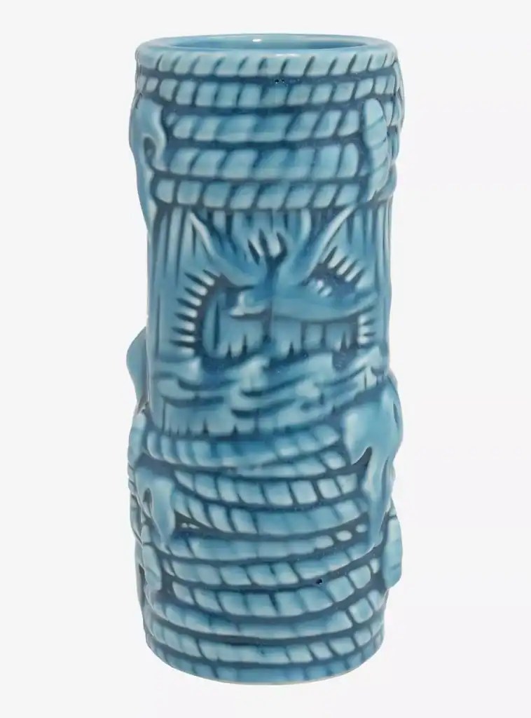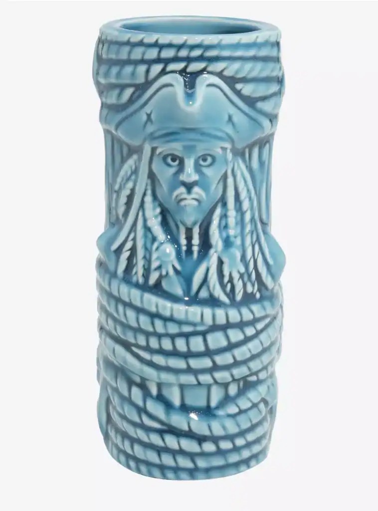 Behold the legendary pirate from Disney’s Pirates of the Caribbean who sails a fine line between legend and lunacy. The teal mug is a generous representation of the chaotic, clever survivor who often pretends to be drunk or foolish to lower others’ guard. However, he’s incredibly resourceful and strategic when it counts. Be careful what you pour into the 22-ounce mugs, he’s forever guarding the liquid inside, especially looking out for any flasks of rum he might have to protect. You can find the Jack Sparrow Geeki Tiki mug HERE.