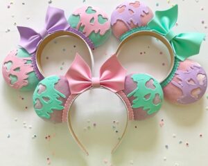 These ears are meant to resemble the Poison Apple from Snow White but with a pastel twist to them.