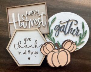 This tiered tray set is perfectly crafted to coordinate and will take your seasonal décor to the next level!