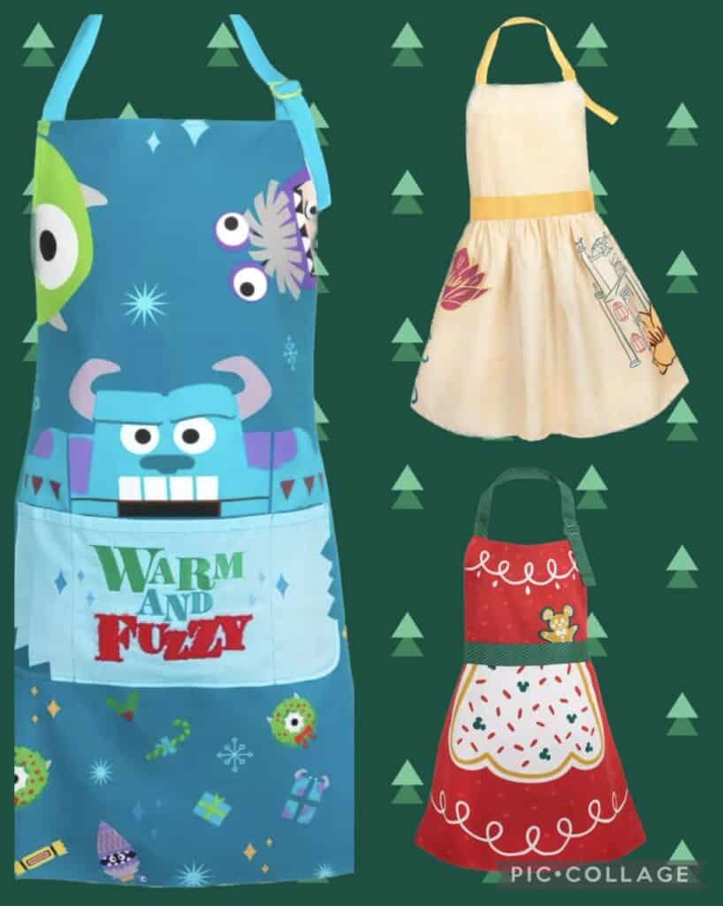 Speaking of kids, check out the two aprons above that are children’s sizes. Let’s face it, kids are not as concerned with cleanliness and preserving their clothing as we are. Cover them with the child version of Princess Tiana or Mickey shaped Holiday treats. I see some fabulous photo ops in your future with these matching “Mom and Me” aprons. They don’t stay small forever mama’s, take pictures with them while you can.