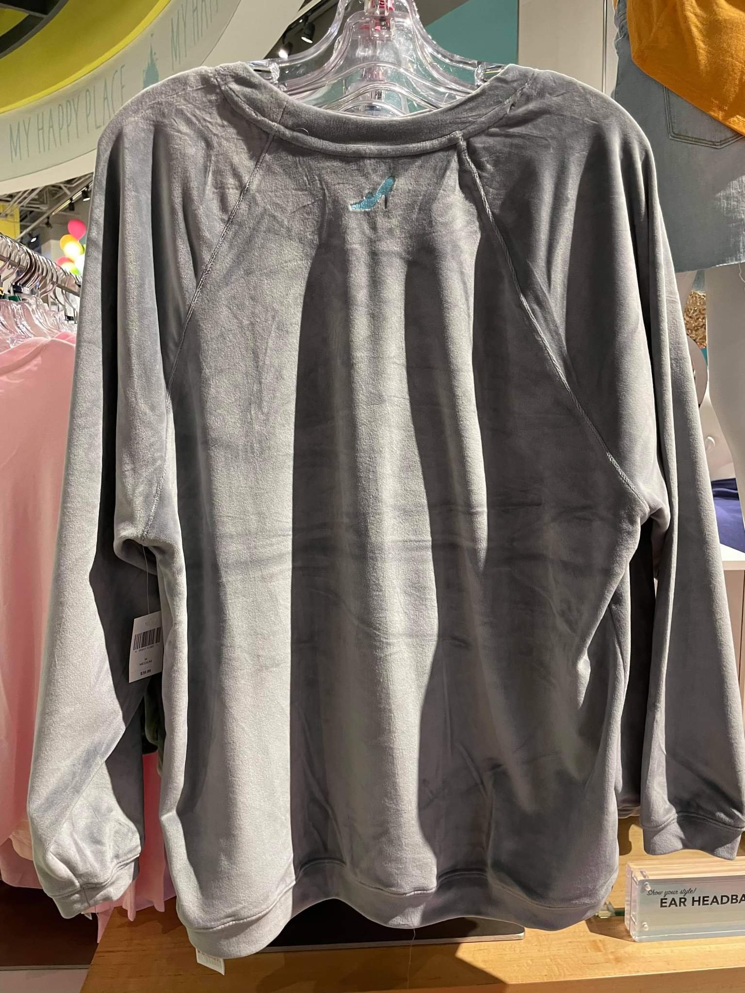 Cinderella is the only Princess to have an entire ensemble (top and pants). This velour suit would be super comfy for lounging or even heading to the Parks in the cooler weather! The top ($39.99) is rather hard to read in the lighting of the store but it says Living Like There’s No Midnight. I love this! We should all live this way!