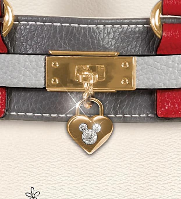 The finishing touch on this bag is the gold charm on the belt. A heart shaped charm with a crystal Mickey icon sits at the center – you’ll get to bring a hidden Mickey with you!