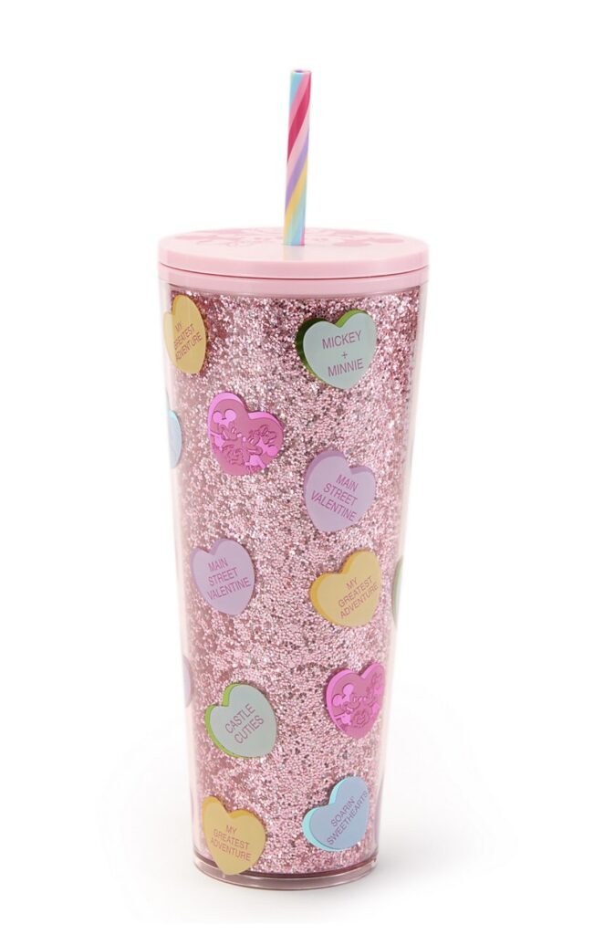 Sip in style with Starbucks love letter in tumbler Form. If you love seasonal Disney drinkware, this one is must-see. The Glitter Conversation Hearts Starbucks tumbler is available now at DisneyStore.com.
