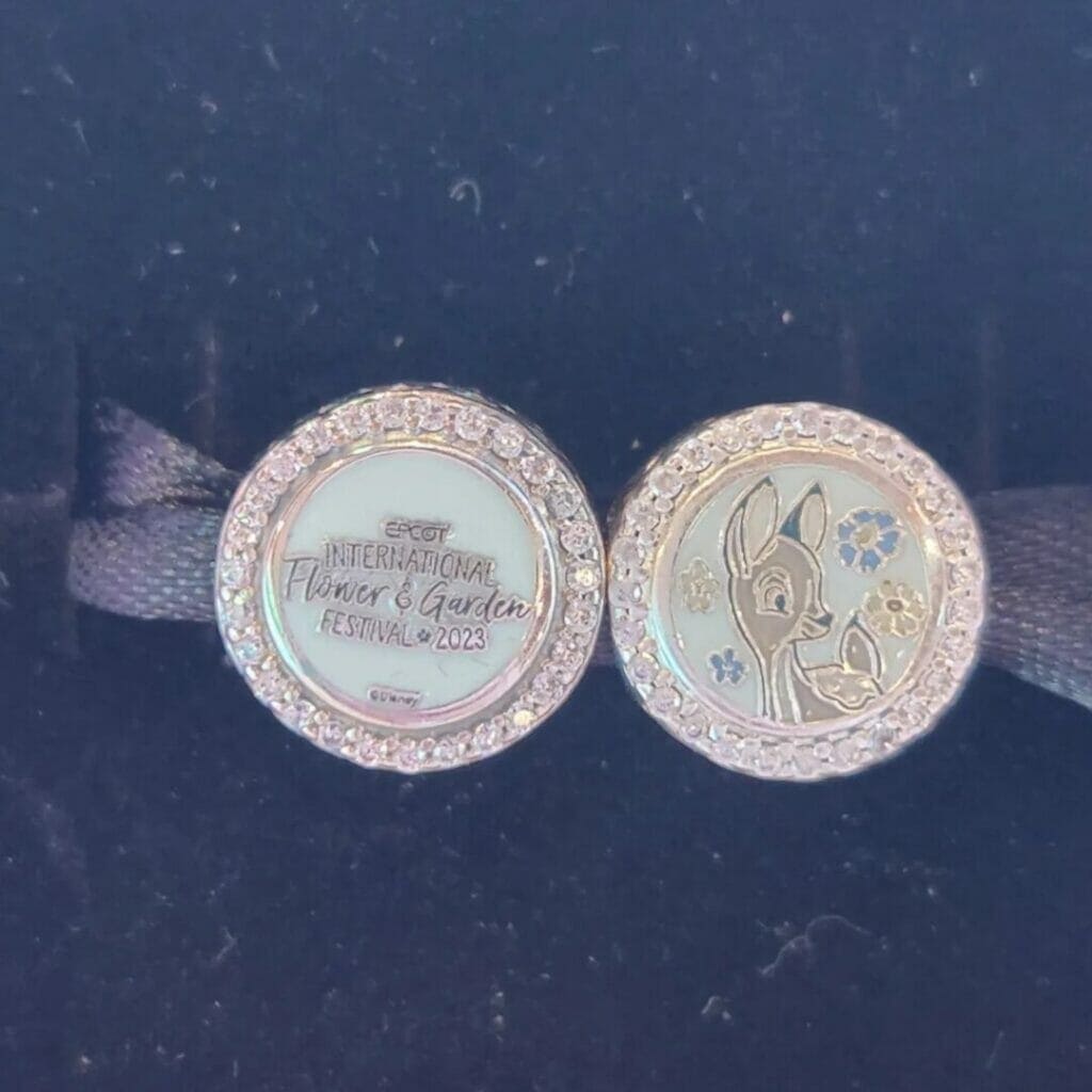 The back side of the Snow White charm tells us what this set is for! EPCOT International Flower & Garden Festival 2023! The backside of the bluebird charm shows us another forest friend! A sweet image of a deer surrounded by flowers can be found in true Snow White fashion. This set is simply the sweetest!