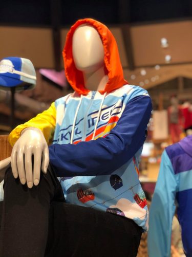 The gondola designs on the jacket are based on actual ones seen soaring over the Walt Disney World property. There are a variety of ones featured, and they zoom around the front, and back of this playful jacket. The new Skyliner Windbreaker comes in adult sizes and is also retails for $49.99. If you are looking for where to find it, we found it at World of Disney in Disney Springs!