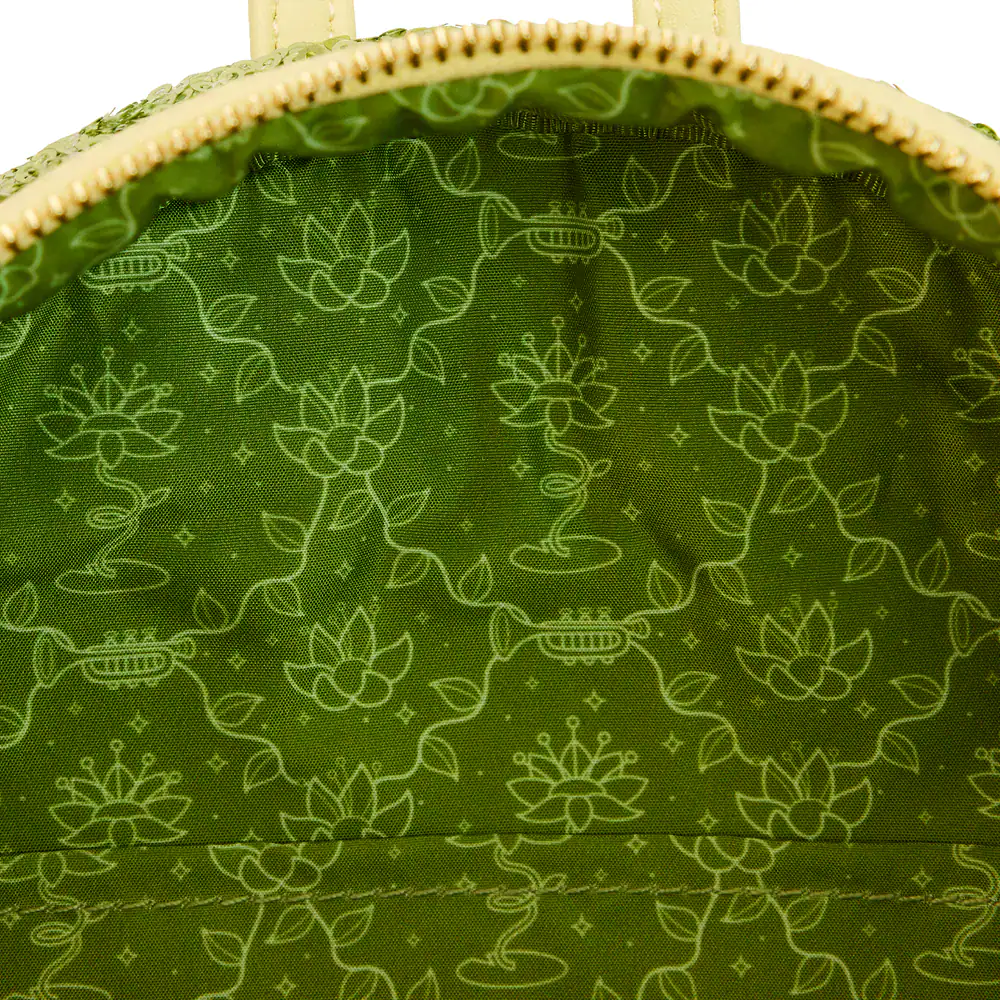 The first item in this collection is a Mini Backpack. The bag looks exactly like Tiana‘s dress and even has a matching bow and lily at the top. Like every Loungefly bag, it is worth taking a 3rd or 4th look so that you don’t miss out on everything this backpack has to offer. I know that one thing that I didn’t see right away was the little golden trumpet on the front zipper-up compartment.