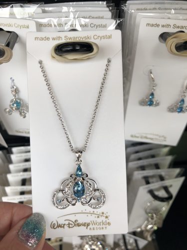 Cinderella’s carriage is an iconic Disney symbol (as well as one of my obsessions!) This necklace and matching earrings set beautifully showcases a sparkly carriage with just the right amount of bling. Crystals in Cinderella’s signature blue color add a pop of color while the silver base is reminiscent of glass slippers. The result is dainty, classic, and outright stunning! The carriage necklace retails for $70.00.