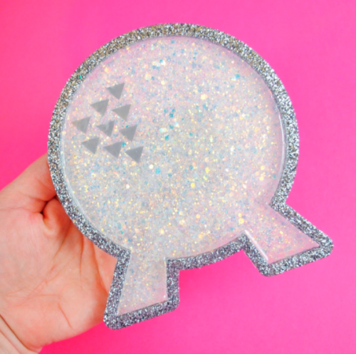 The web store Oh So Fabulous has such a treasure keeper too! The resin jewelry tray is shaped just like our beloved Spaceship Earth, and is extra sparkly too! Lots of glitter has been packed into this stunning jewelry dish, that not only holds treasures, but looks phenomenal too! You can also customize the background glitter color! They actually offer dozens of color choices, so that this SSE is uniquely you! If you like a personal touch, Oh So Fabulous also has a monogram add on!