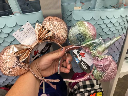 The second pair is the standard rose gold pair we have all come to love. Perhaps your mini fashionista wants to match but the headbands are too big at the Parks. Enter Target’s version of rose gold Minnie Ears for only $9.99! These can be found HERE.