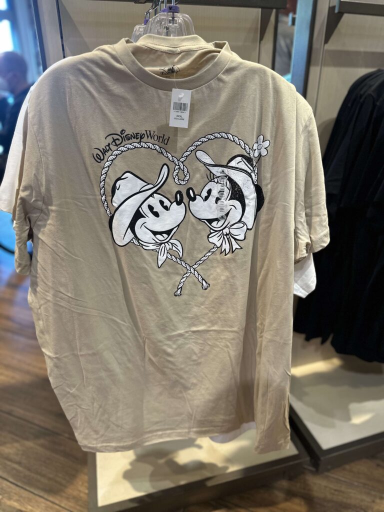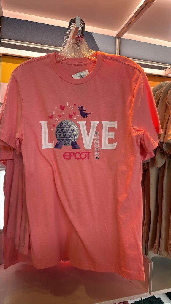 We spotted three “lovely” new shirts at Disney Springs the other day. As Christmas gets packed away, we hope to see more festive Valentine’s merchandise hit the shelves. After all, Mickey and Minnie have been together since 1928, what a great example of love!