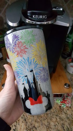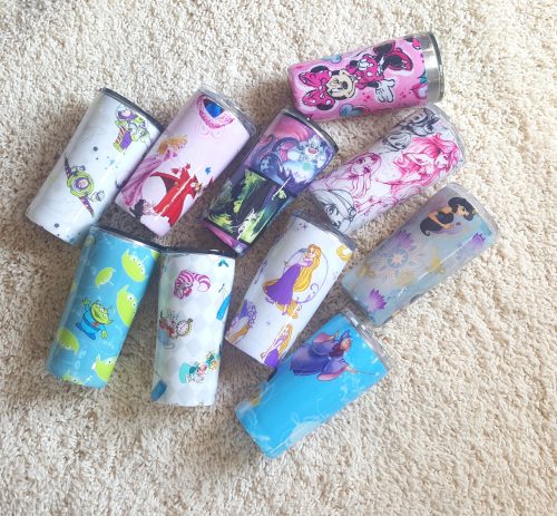 My personal favorite is the all glitter tumbler. It reminds me of Jasmine but I just love glitter. (Confession time I’ve never seen Aladdin.) It can also be personalized however you want with whatever colors you want. I’d probably do rose gold and pink to match my rose gold ears.