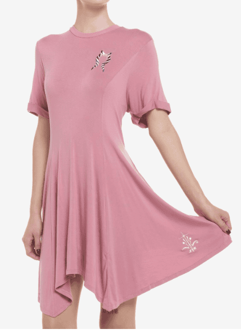 Rep your love for Ahsoka Tano in a subtle way with this cute and comfy dress! This t-shirt dress has a handkerchief hem and features Ahsoka’s montrals embroidered at the chest and a special Star Wars logo embroidered on the bottom. The look is complete with rolled cuffs and side seam pockets.