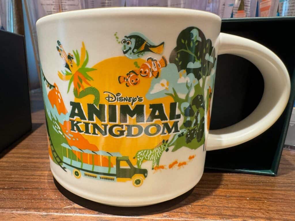 Feel the Safari vibes as you sit at home drinking your hot beverage. A layout of all things Animal Kingdom encircle mug. Flamingos, Kevin, and even the soon-to-be-extinct dinosaur make their debut on the side of this mug. Dory, Marlin, and Nemo even are joined together at last! It’s the perfect way to enjoy the parks year-round from the comfort of your own home!
