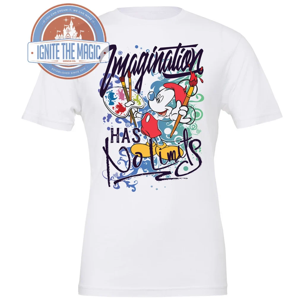 Imagination has no limits, and neither will you when you wear this Disney inspired t-shirt. Mickey Mouse is art at work painting a masterpiece! Look closely at his palette for a fun little surprise. You can find this shirt on Etsy from IgniteTheMagic.