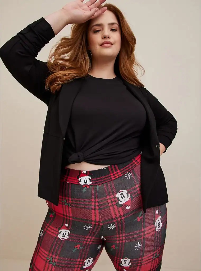 This is my favorite piece out of all the new holiday styles from Torrid! I absolutely love this top! Actually, love might be an understatement. I NEED this top in my closet! Mickey, Minnie, Pluto, Donald, and Goofy are surrounded by strings of holiday lights on this fabulous shirt.