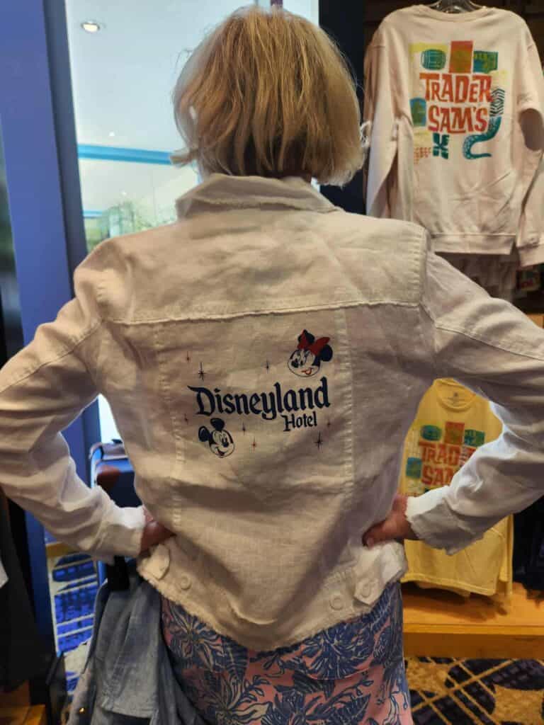 Discover apparel aplenty in the shops at Disneyland Hotel. Go from casual and comfy in the hotel robe to dressed for the town with the embellished jacket. You’ll find everything you need in between, from tanks to 3/4 zip jackets.
