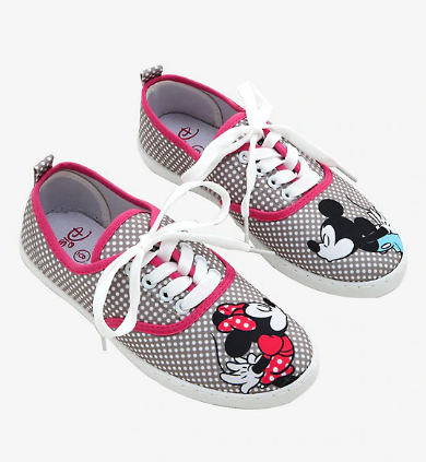 These Mickey Mouse & Minnie Mouse Kissing Lace-Up Sneakers are so adorable! Not only do they have polka dots and pink trim, but they also have images of Mickey and Minnie kissing! Just tap your toes together! Oh boy!